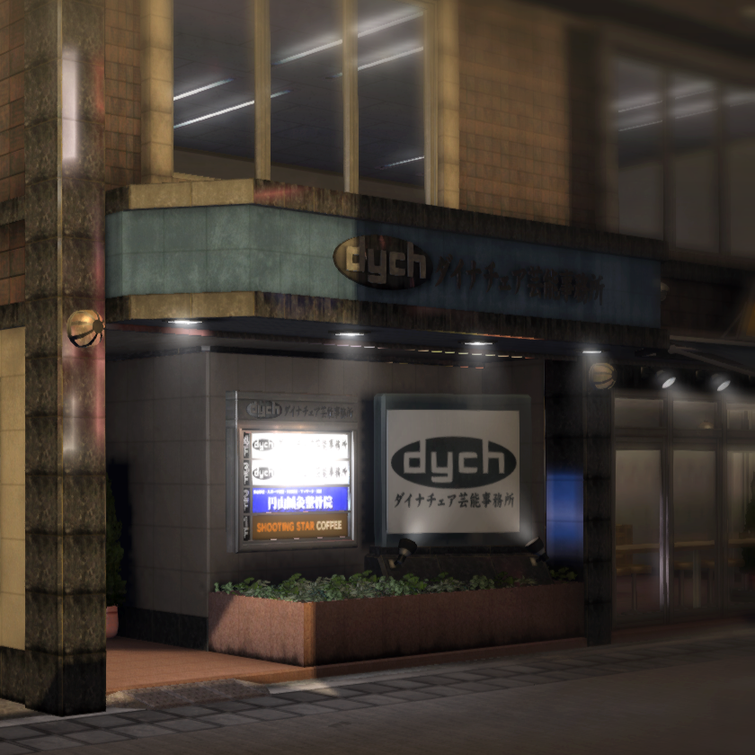 - In Yakuza: Like a Dragon, the two signs that previously displayed "Dyna Chair Entertainment Office" (ダイナチェア芸能事務所) now display "Private Law Office" (プライベーレ法律事務所).