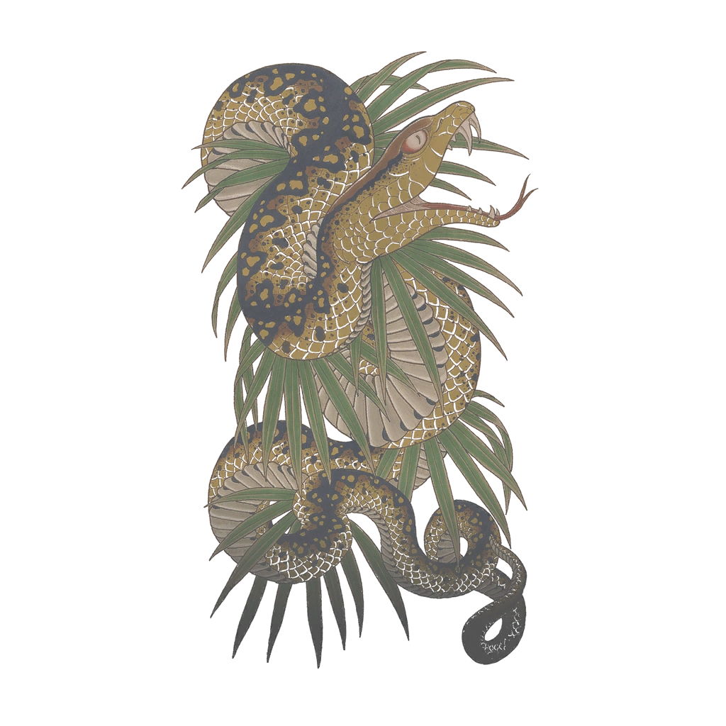Rikiya's tattoo depicts a viper - specifically the Okinawan habuWP, a pit viper native to the Ryukyu Islands - the eye of which remains unfinished until Kiryu brings him to have it completed by Utabori.