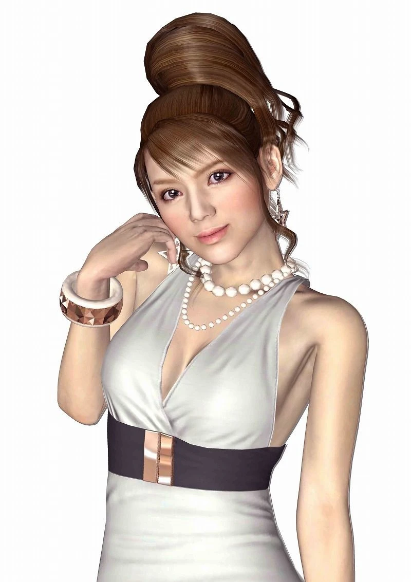 Rio-chan is half-Japanese. That gives her a sexy, exotic appeal, guaranteed to drive you wild. She's the number one hostess at the club, and not just for her looks! I heard that she recently got picked up to write a column for a Kamurocho magazine. She's 23, a Scorpio, and her blood type's A! Music is one of her many hobbies. Oh, also, she loves chocolate. Hehehe... No man could ever turn down the chance to go on a life-changing date with the super sexy Rio-chan!