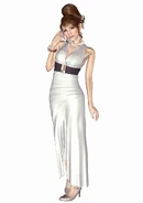 At work, she wears a white dress, two necklaces, a pair of star-shaped earrings, and a bracelet. Outside of work, she wears a cream trench coat and a pair of boots. Her extended nails are removable as they are stuck on by double-sided tape, so they won't interfere with her guitar practices.