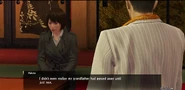 When Oda momentarily departs to look around the site, Makimura tells Kiryu that she recognizes Oda's voice, since she's already met him before: He's the man who kidnapped her and sold her to the Triad several years prior. Oda overhears her, pulls a gun on them both, and takes Makimura hostage. Oda reveals that his sale of Makimura happened before he met Tachibana and that later, when he realized that the woman he'd sold was his best friend's long lost sister, he resolved that he could never let them reunite. Oda tells Kiryu that he made a deal with Shibusawa prior to their journey to Osaka: He would give him Makimura and, in exchange, he and Tachibana would be spared, though Kiryu would still be killed.