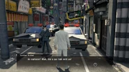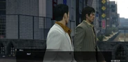 A few hours prior, Kiryu and Oda had met with Sera to escort Makimura to Tokyo. Sera tells Kiryu that he is an old friend of his foster father and that he too intends to prevent Dojima from becoming the Tojo Clan's next chairman. Makimura agrees to go with Kiryu after he tells her that he works for her older brother and that he'll reunite her with him. The trio travels back to Tokyo by car but are ambushed by Shibusawa and his goons, who attempt to shoot and ram them off the road. After gaining some distance on their attackers, the trio pulls out of the highway and hide in a nearby construction site.